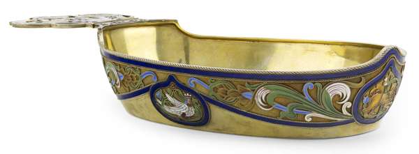 A silver-gilt and shaded enamel kovsch, 20th Century,