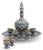A silver-gilt and cloisonné enamel and silver vodka set