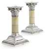 of Corinthian form, stepped square base with gadroon detail, ivory column and silver capital with removable sconce (2)