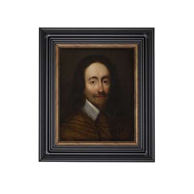 The King is seen here wearing the armour of his older brother Henry, now in the Royal Armories Collection. This is the only known portrait of Charles I on gilt leather.