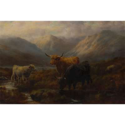 Signed and dated 1926, oil on canvas and a companion a pair 'Cattle by a Loch' (2)