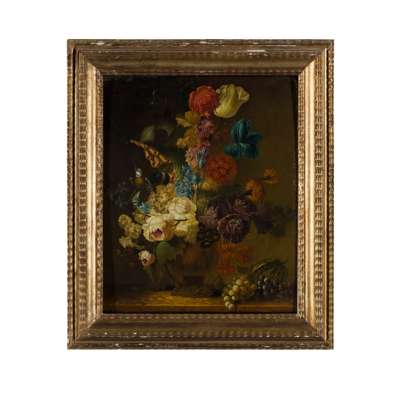 STILL LIFE OF FLOWERS AND FRUIT IN A VASE