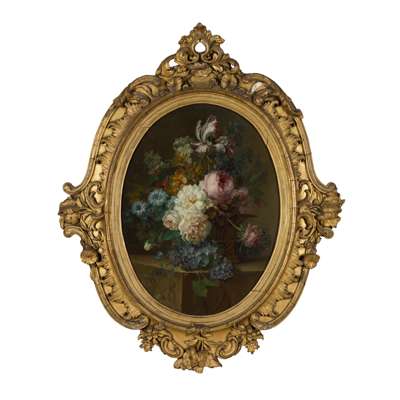 Biography: Willem van Leen (19 February 1753- 6 April 1825) was a Dutch painter who specialised in flower paintings, best known for his decorative work for mantelpieces and overdoors. After training with his father Jan van Leen as a child in his hometown of Dordrecht, Willem travelled to Paris at the age of twenty, where he studied flower painting for three years. From this point, van Leen split his time working between Holland and Paris, receiving important commissions such as designing wall decorations in the Pavlovsk Palace in St. Petersburg for the Grand Duchess of Russia.