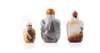one ovoid bottle with mask handles, one rounded rectangular plain bottle and one small bottle carved with bird in flight (3)