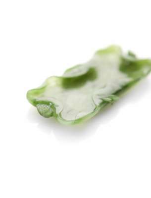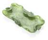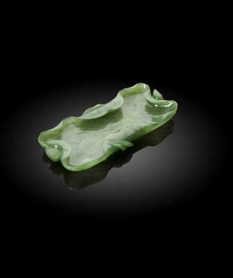 of curved rectangular form shaped as a lotus leaf with lotus bud and pod, the veining finely incised