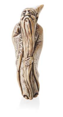 JAPANESE CARVED IVORY NETSUKE OF AN IMMORTAL Y