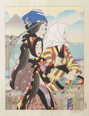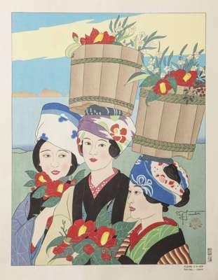 woodblock print, signed and stamped, 47cm high, 36cm wide (including margin); together with another by the same artist, 'LES GRAINES DE CAMELIA', signed and stamped, 47.5cm high, 36cm wide (2)
