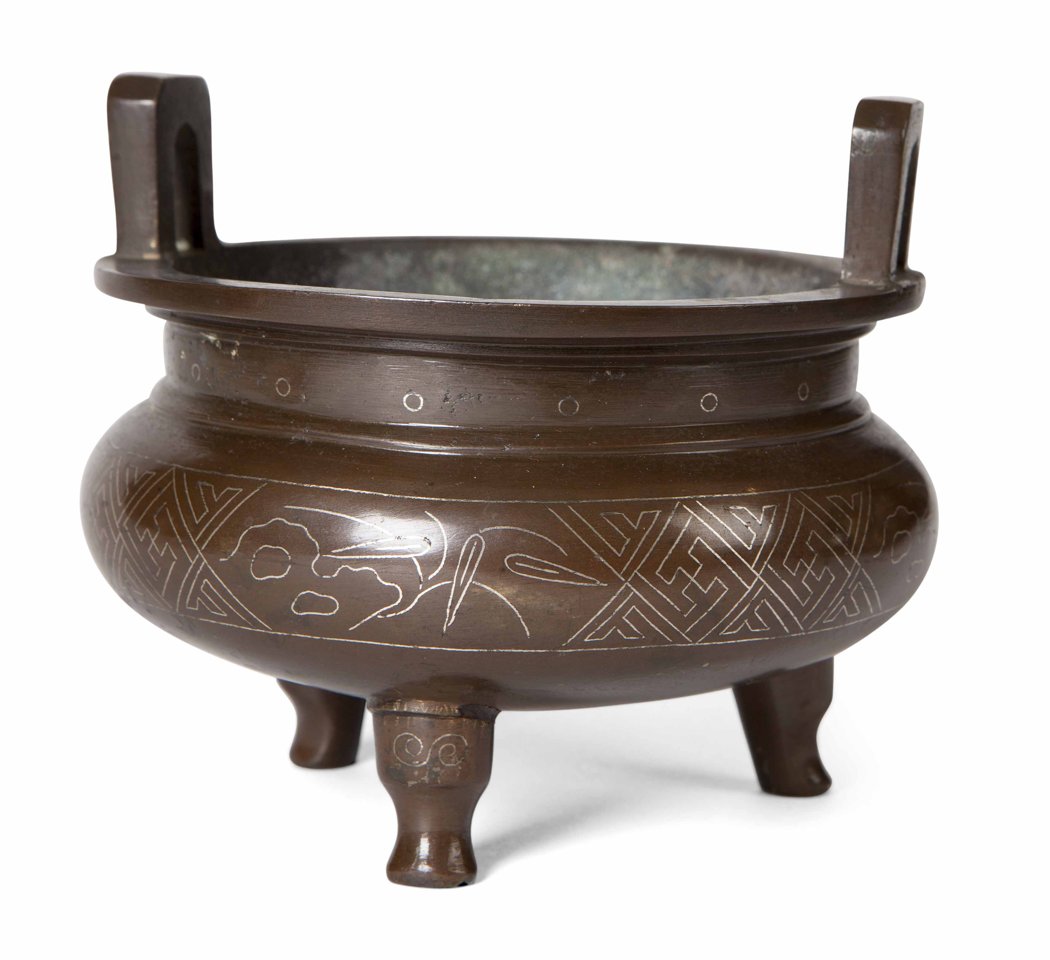 BRONZE CENSER WITH SILVER WIRE INLAY