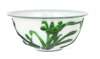 GREEN-OVERLAY WHITE GLASS BOWL