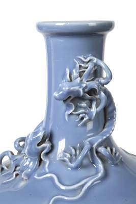 the well potted baluster sides and tall neck decorated in high relief with two chilong