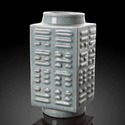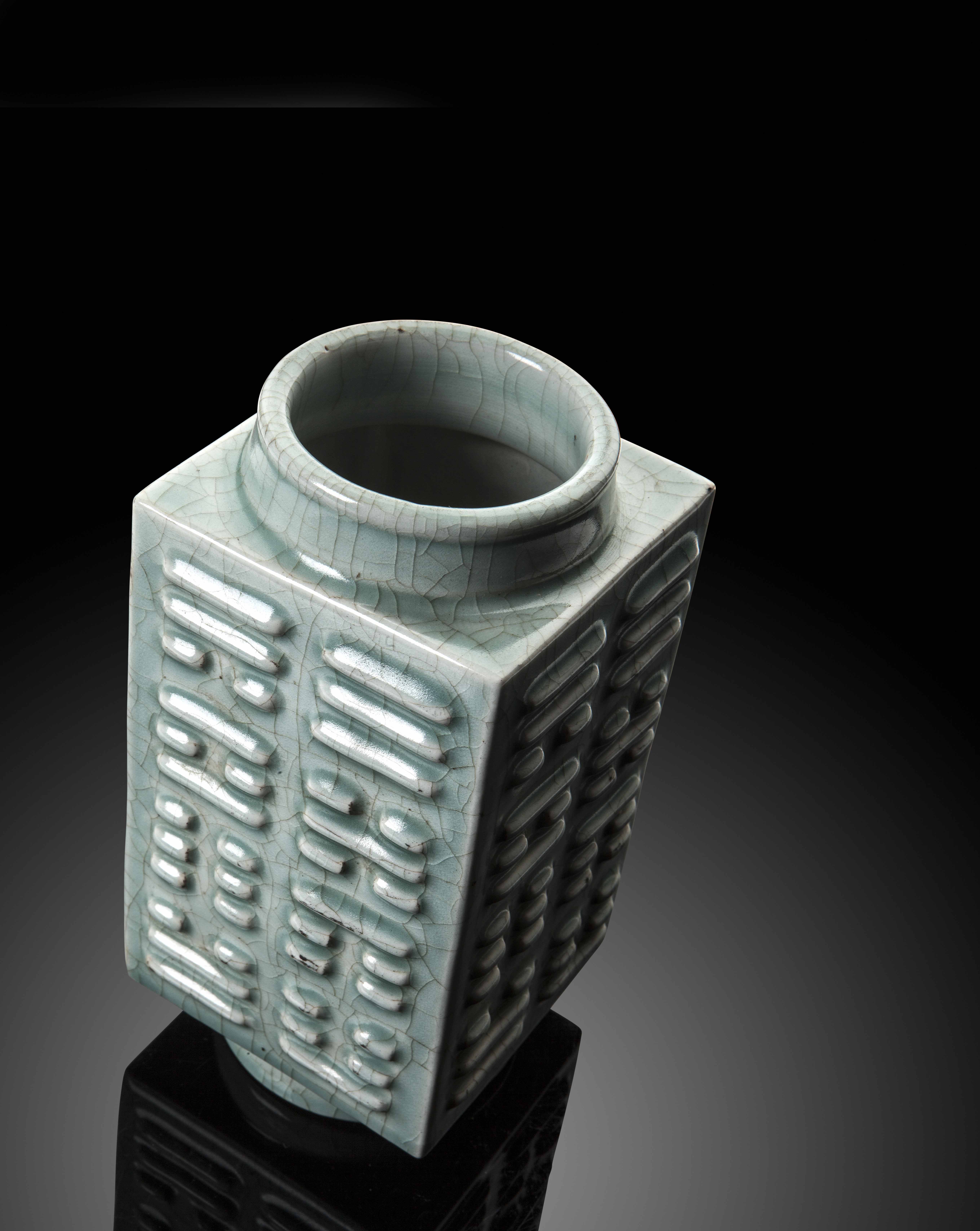 CELADON CRACKLE GLAZE CONG-SHAPE ‘TRIGRAMS’ VASE