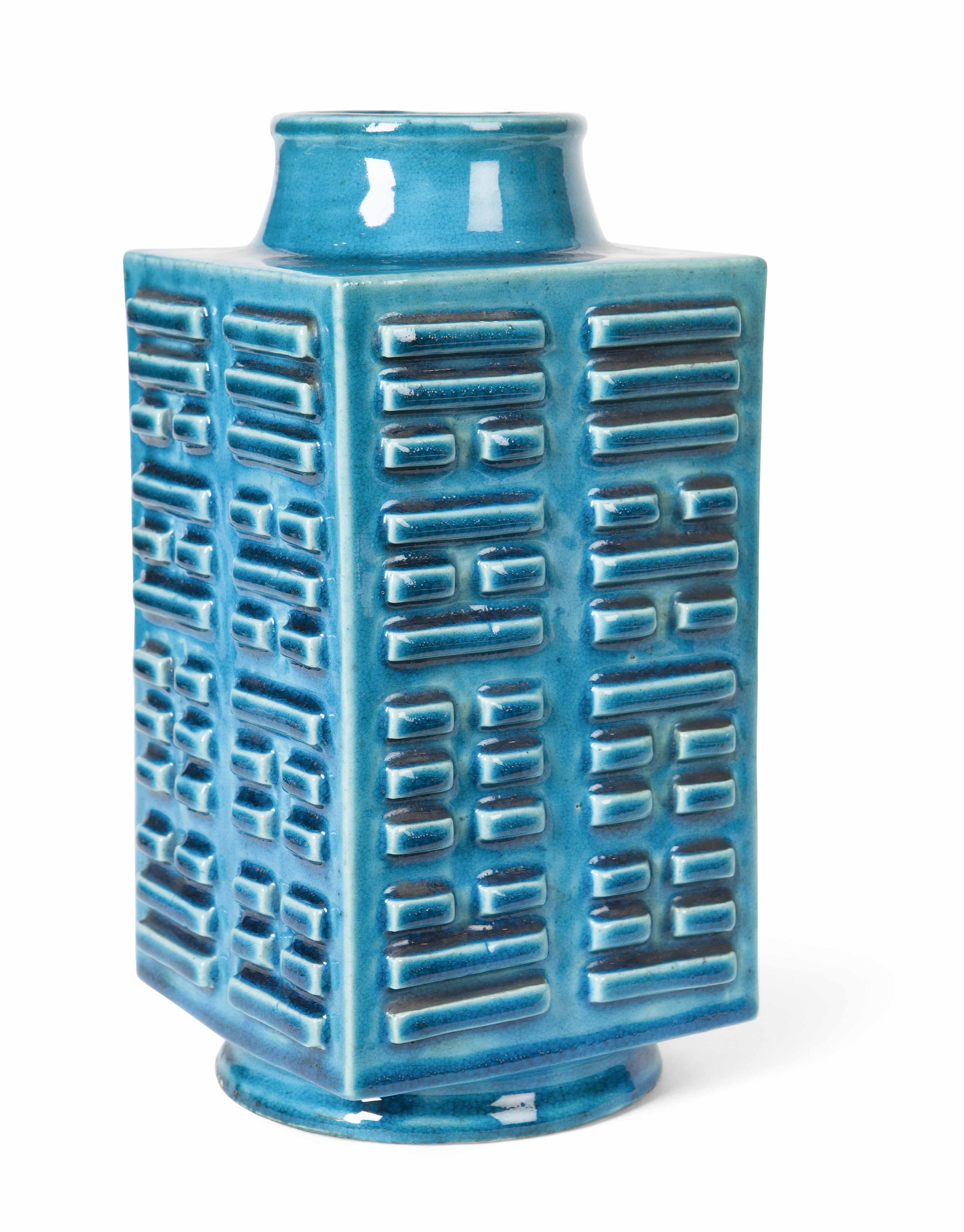 the rectangular body resting on a circular foot and decorated in relief with the Eight Trigrams