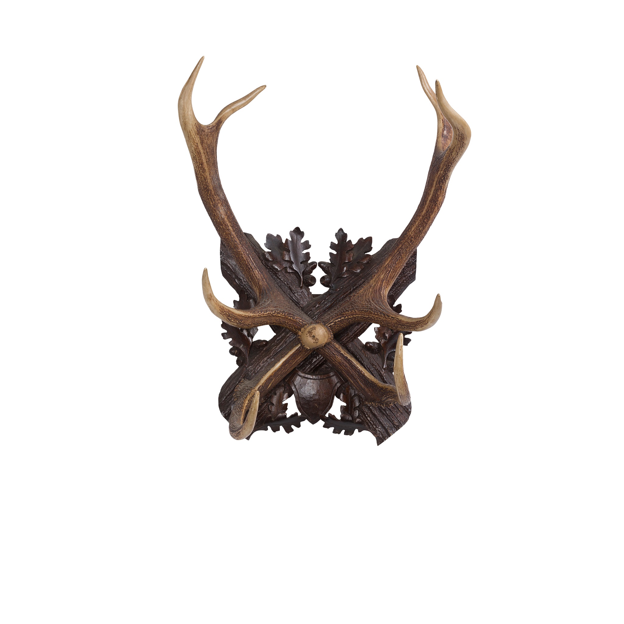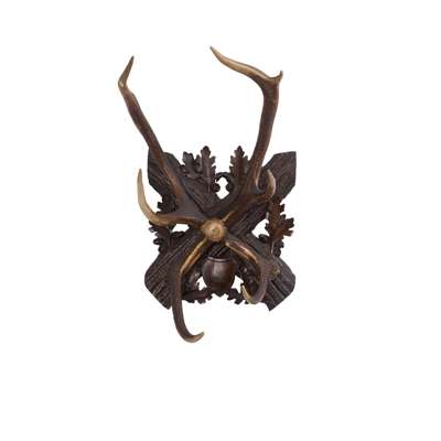 PAIR OF BLACK FOREST ANTLER AND WOOD WALL HOOKS