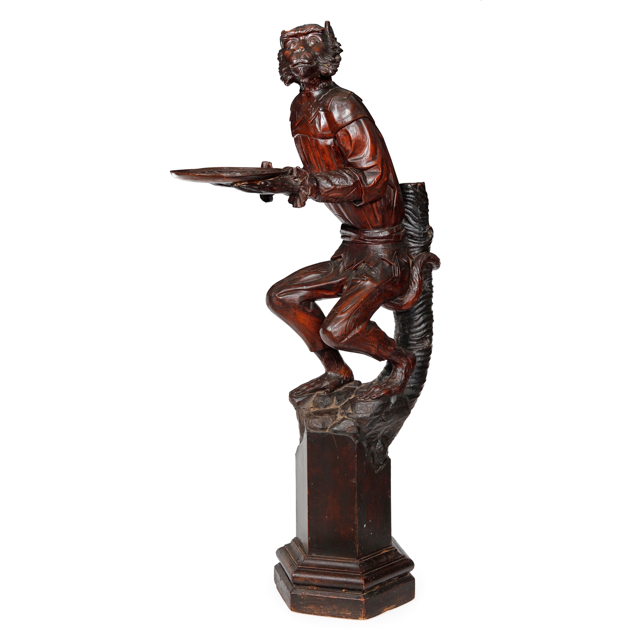 VENETIAN CARVED WALNUT FIGURE OF A MONKEY BUTLER