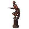 in a court jester’s costume, holding a tray, with head turned to the left, on plinth base