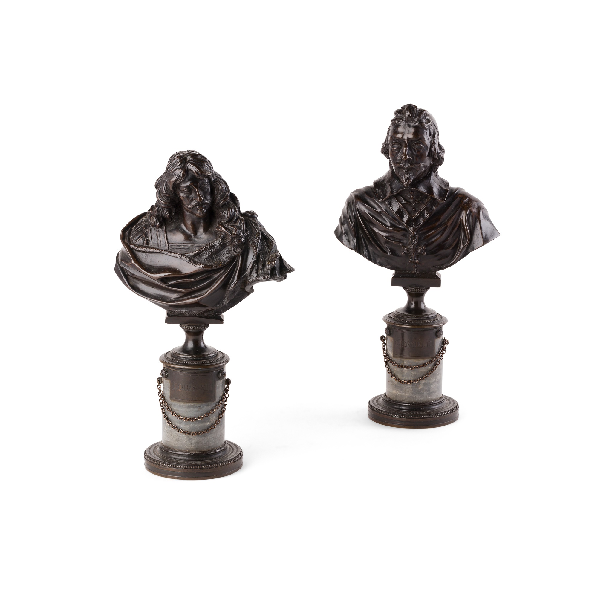 PAIR OF FRENCH BRONZE BUSTS OF CARDINAL RICHELIEU AND LOUIS XIII