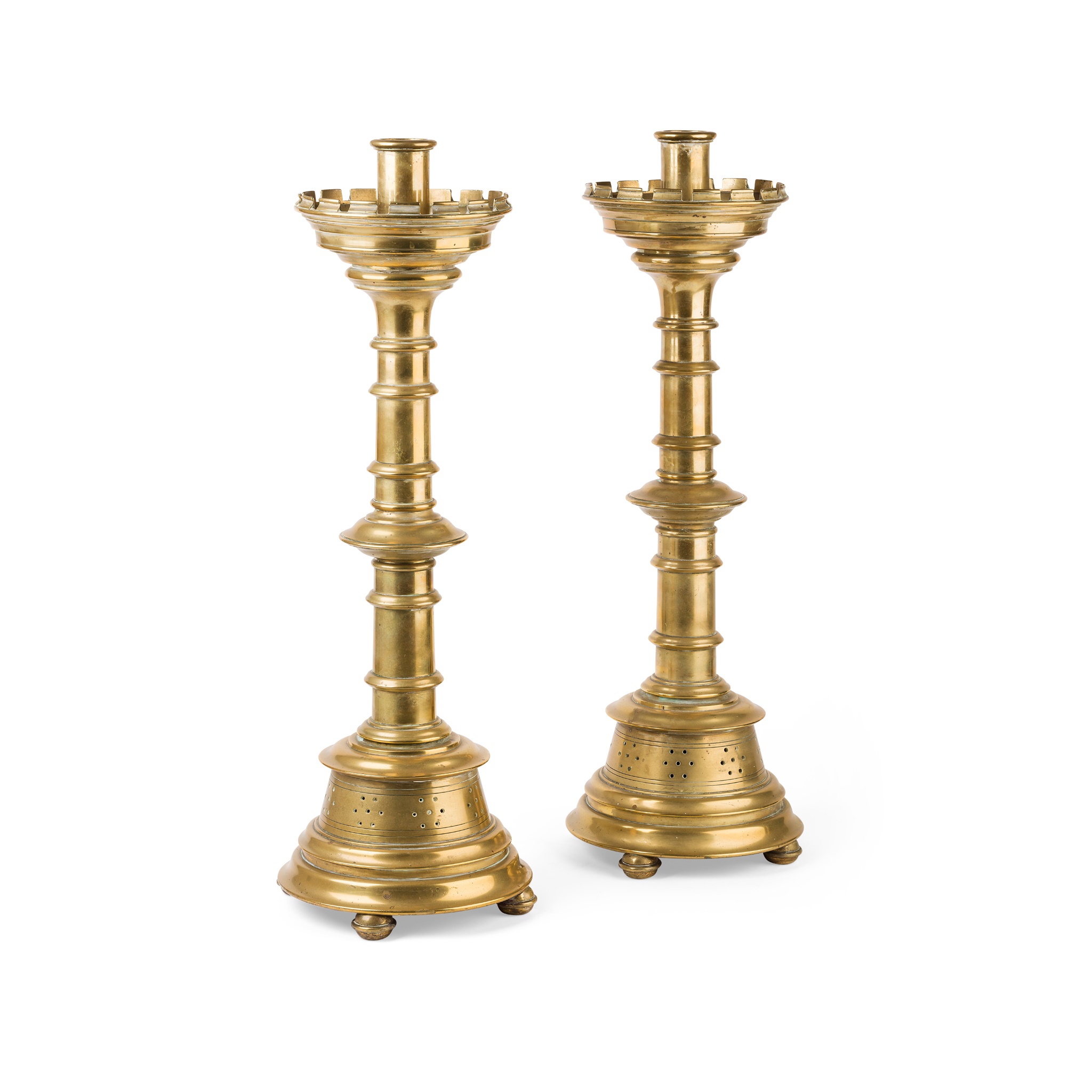 PAIR OF LARGE DUTCH BRASS CANDLESTICKS