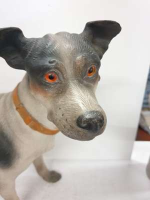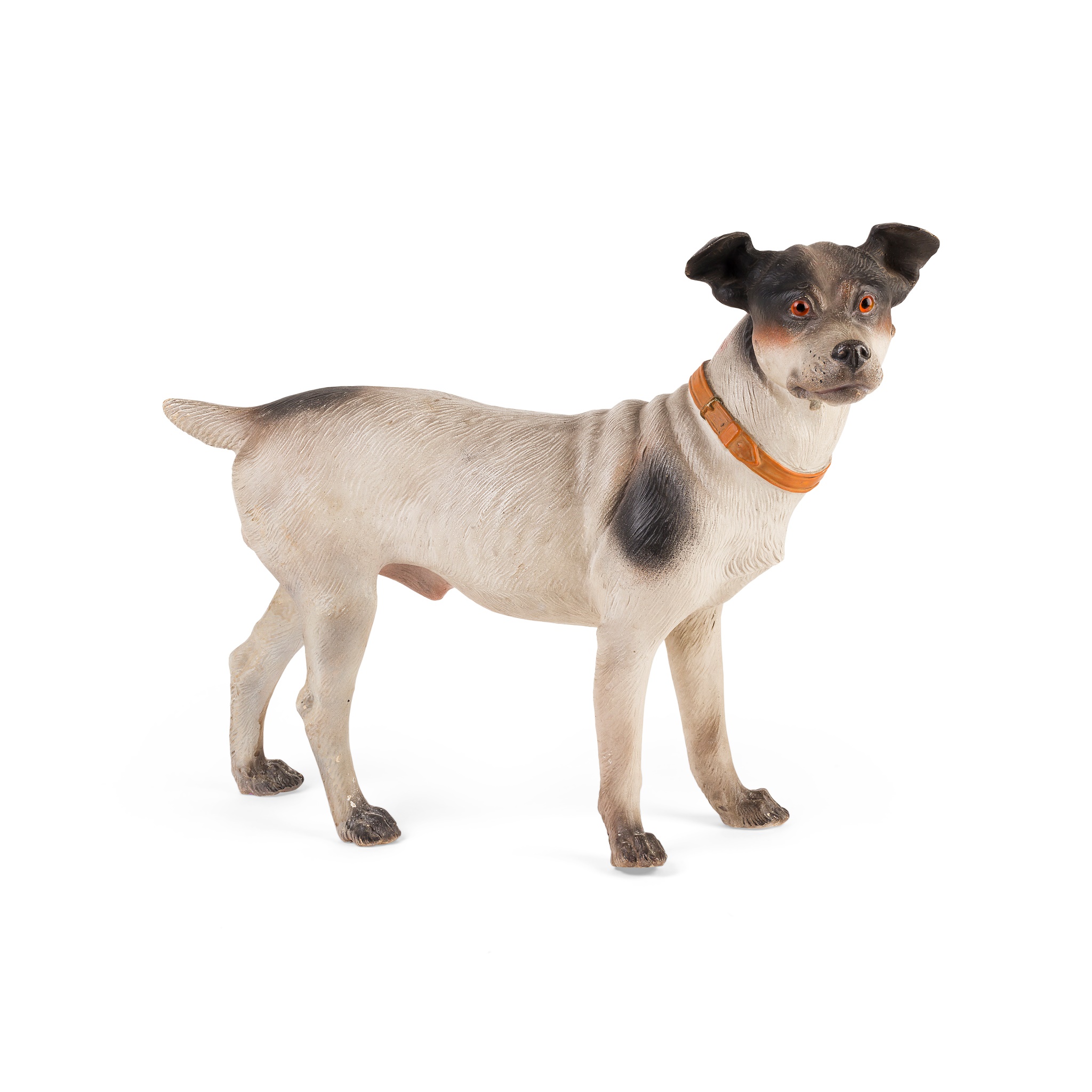 AUSTRIAN PAINTED TERRACOTTA FIGURE OF A JACK RUSSELL