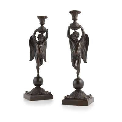 PAIR OF REGENCY BRONZE FIGURAL CANDLESTICKS