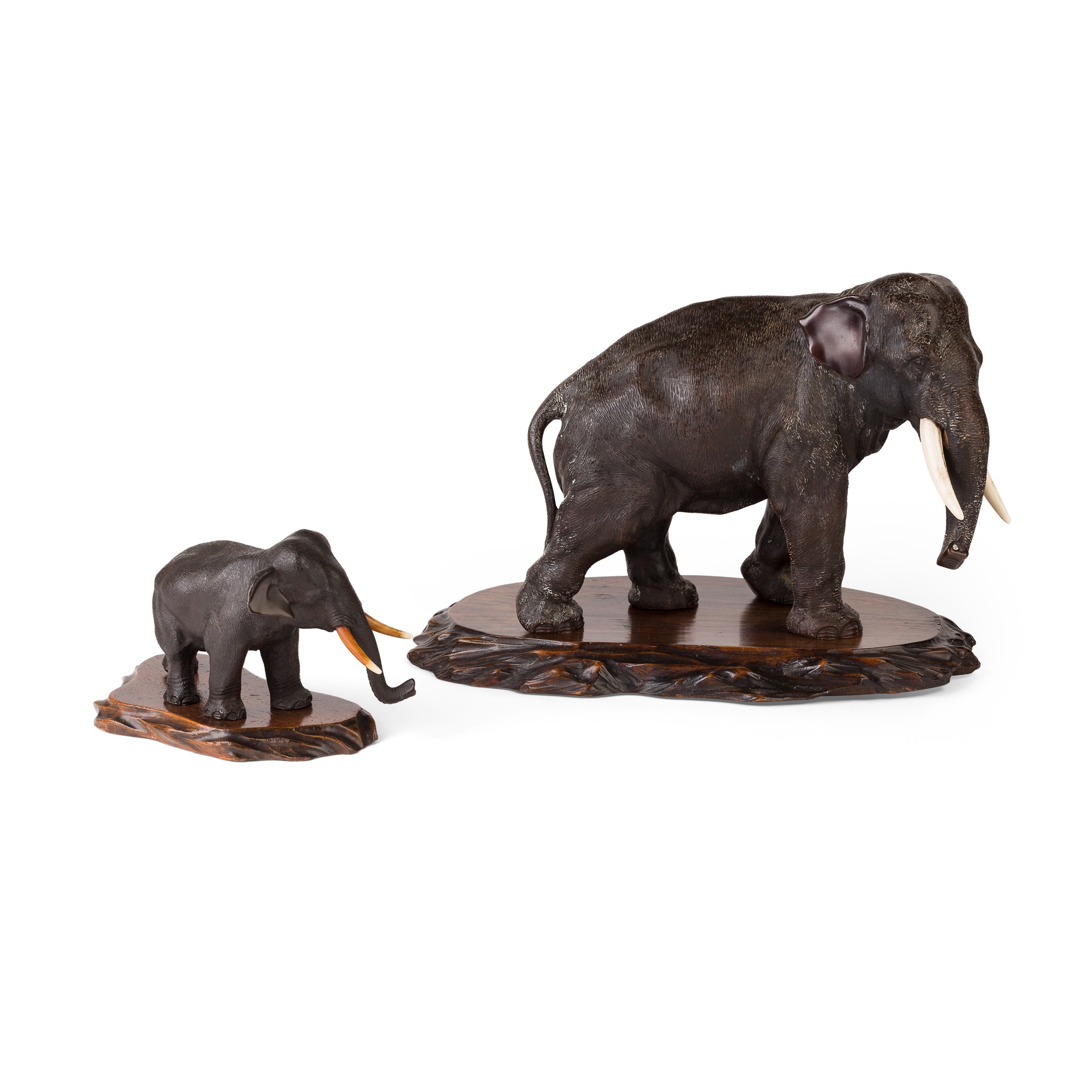 TWO JAPANESE BRONZE FIGURES OF ELEPHANTS Y