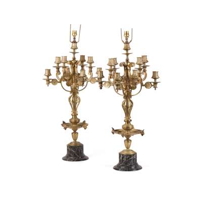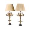 PAIR OF LARGE PATINATED METAL CANDELABRA LAMPS