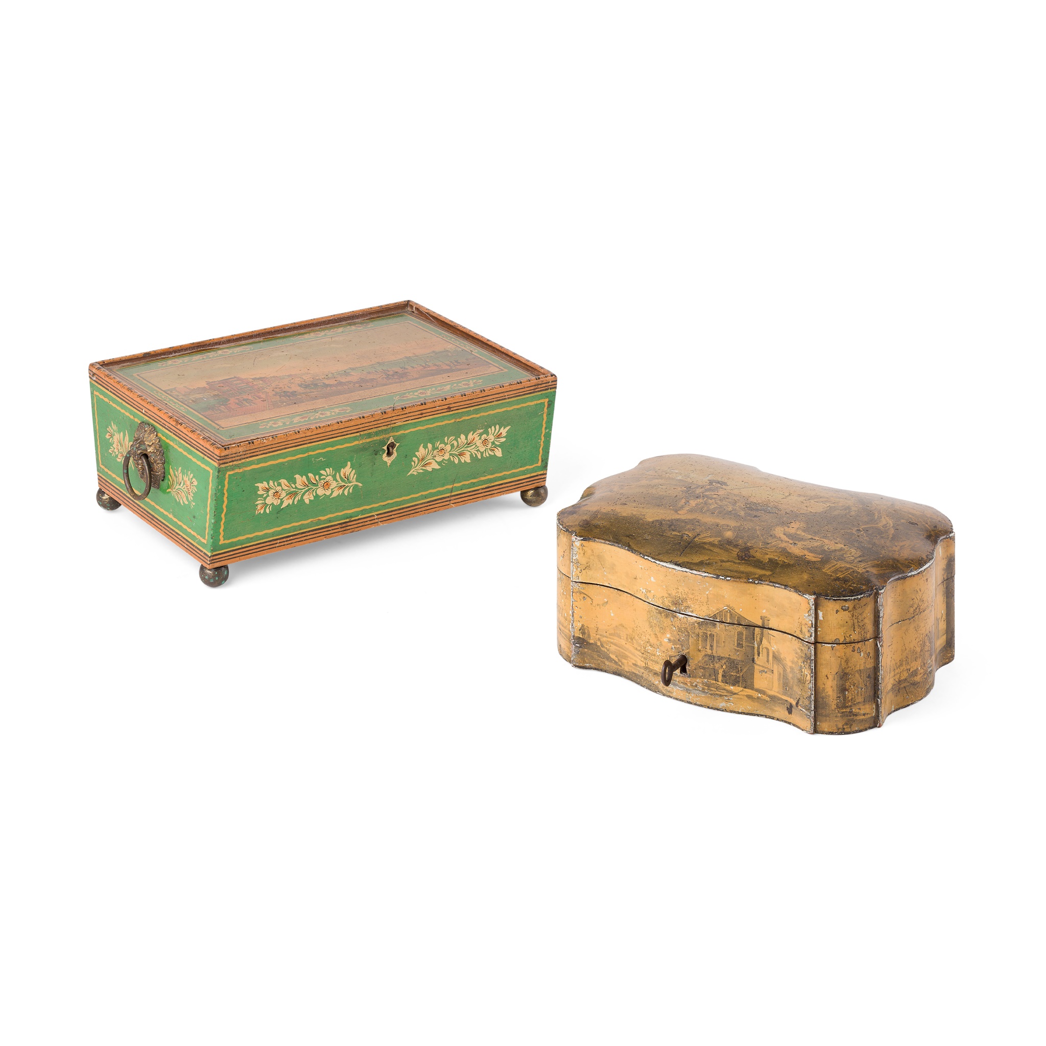 TWO PAINTED/LACQUER PRINTED WOOD BOXES