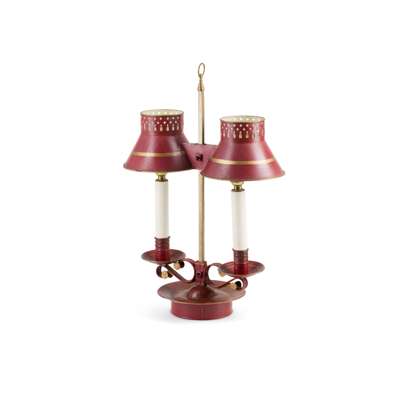 RED TOLE PAINTED BOUILLOTTE LAMP