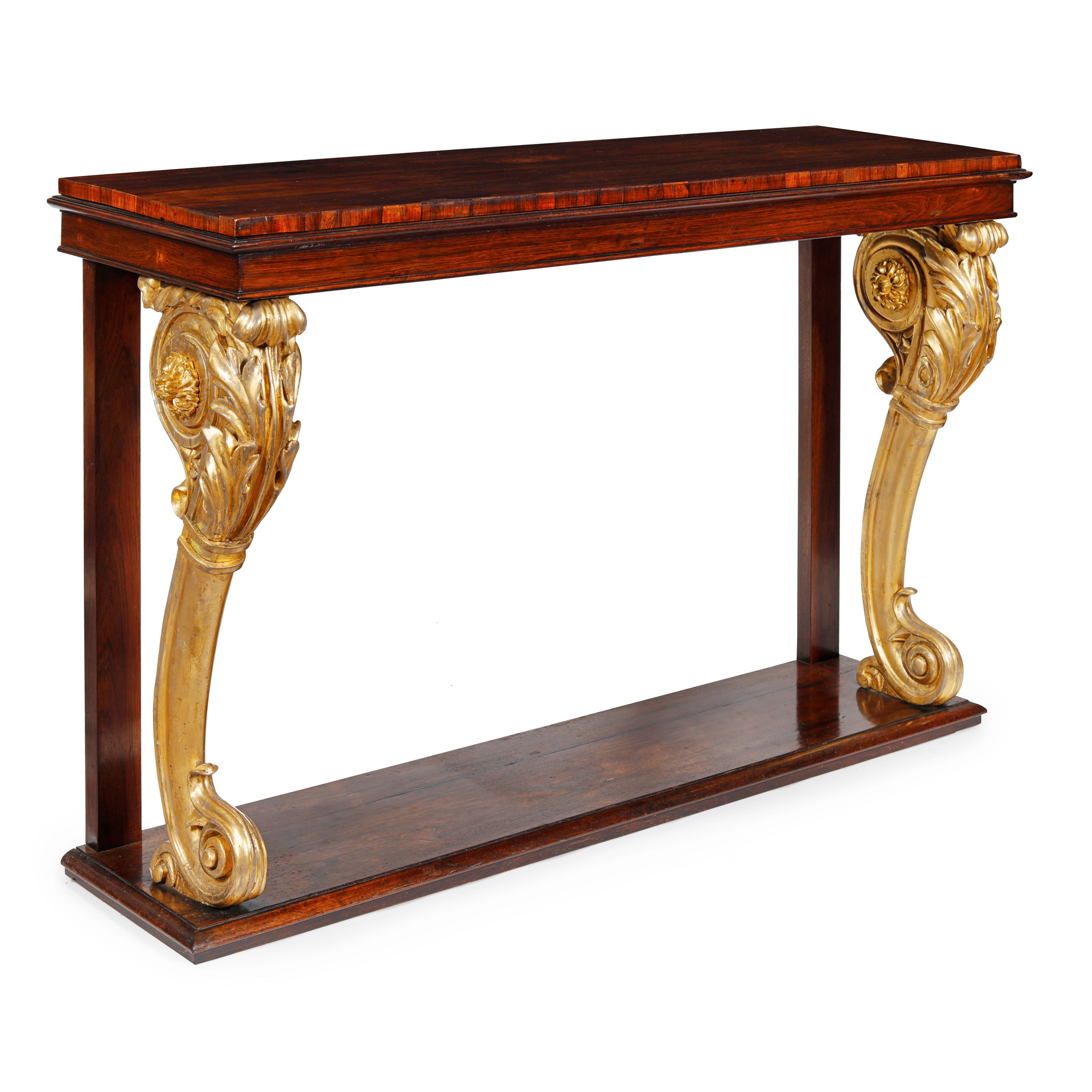 REGENCY ROSEWOOD AND GILT WOOD CONSOLE TABLE Y