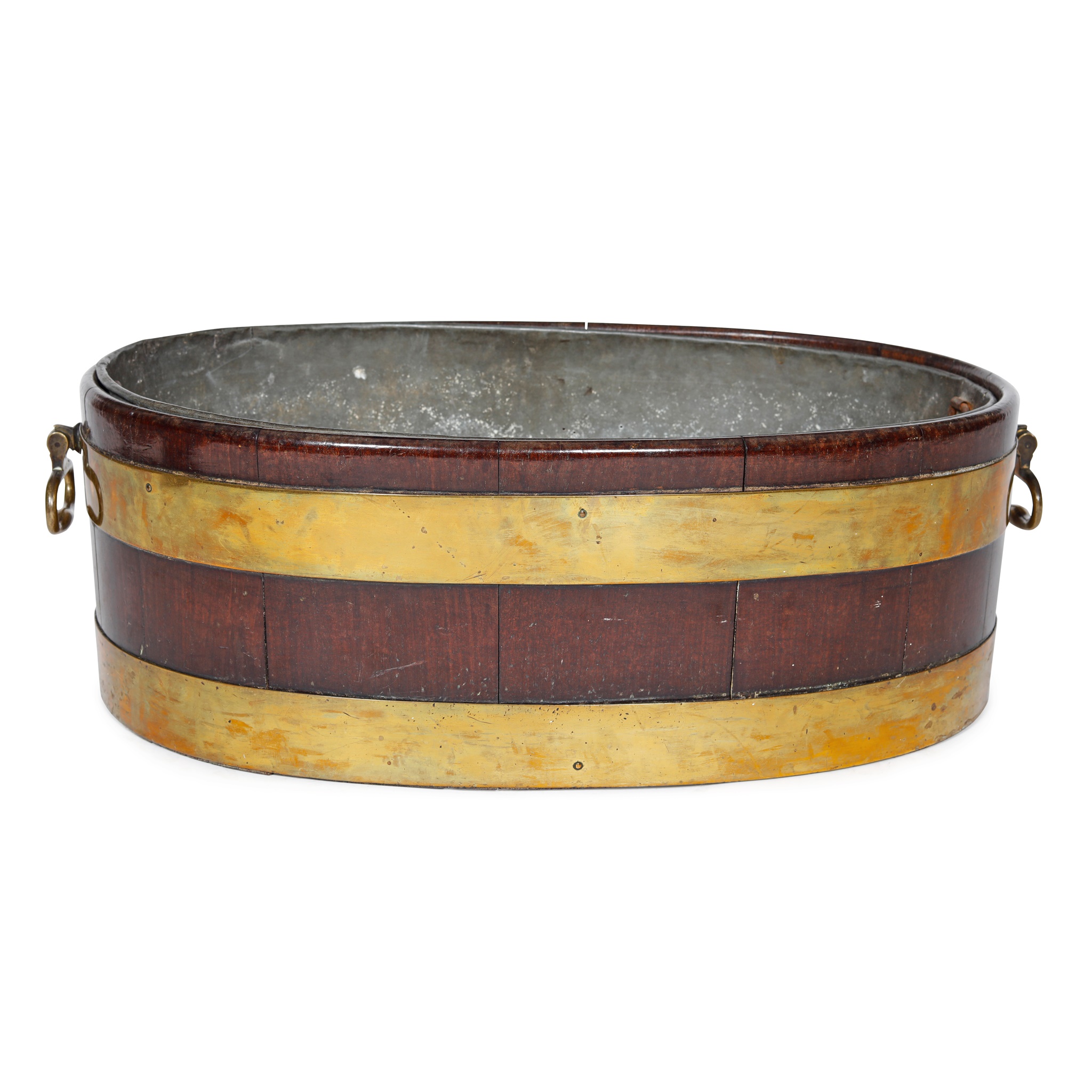 GEORGE III MAHOGANY BRASS BANDED WINE COOLER