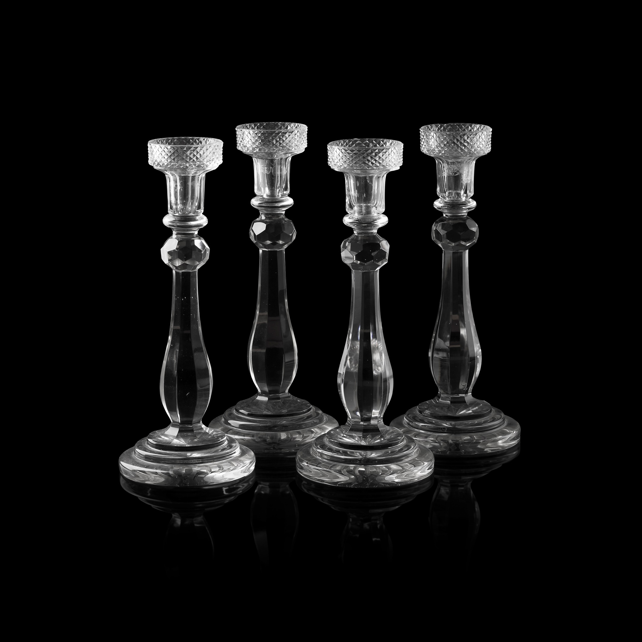 SET OF FOUR REGENCY CUT GLASS CANDLESTICKS