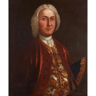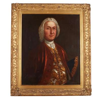 HALF LENGTH PORTRAIT OF A GENTLEMAN WITH BROCADE WAISTCOAT