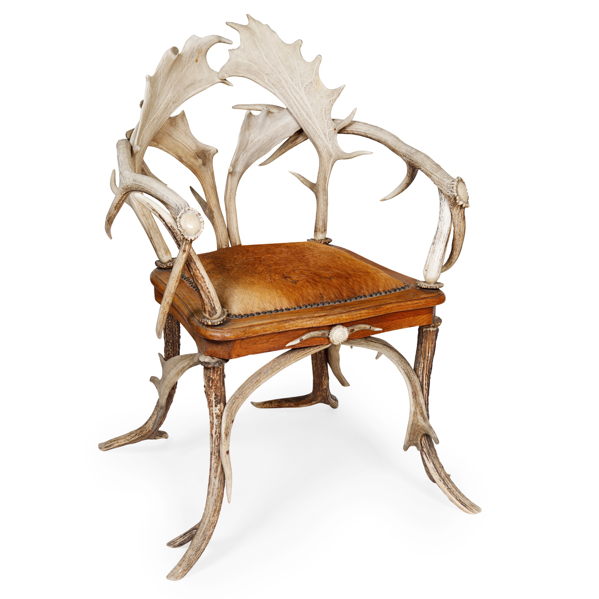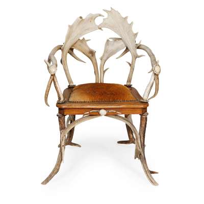 GERMAN ANTLER FRAMED OPEN ARMCHAIR