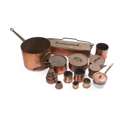 GROUP OF COPPER POTS AND PANS