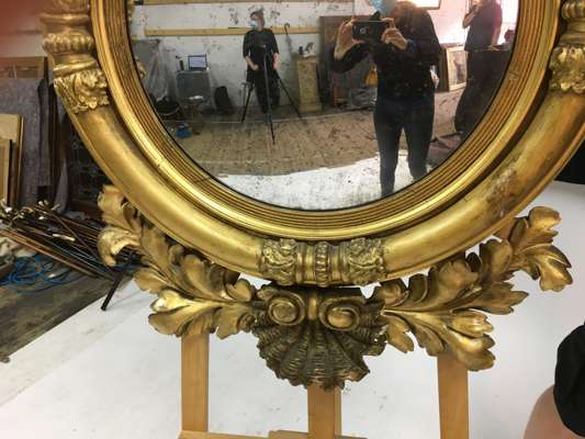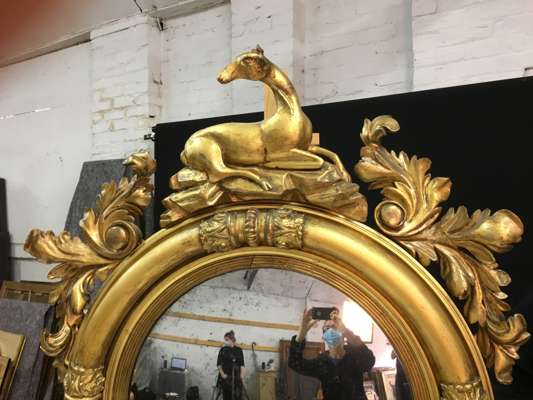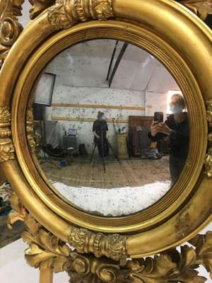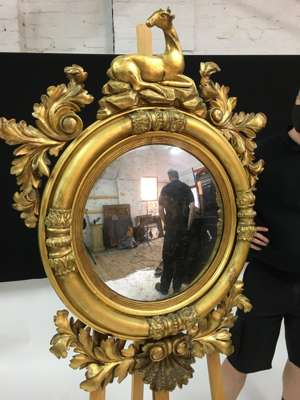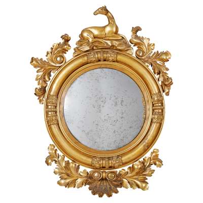 LARGE REGENCY GILT WOOD CONVEX MIRROR
