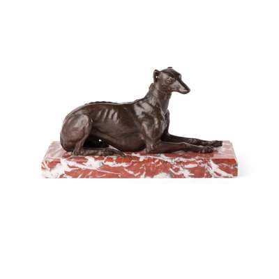 AFTER CHRISTOPHE FRATIN, LARGE BRONZE FIGURE OF A RECUMBENT GREYHOUND
