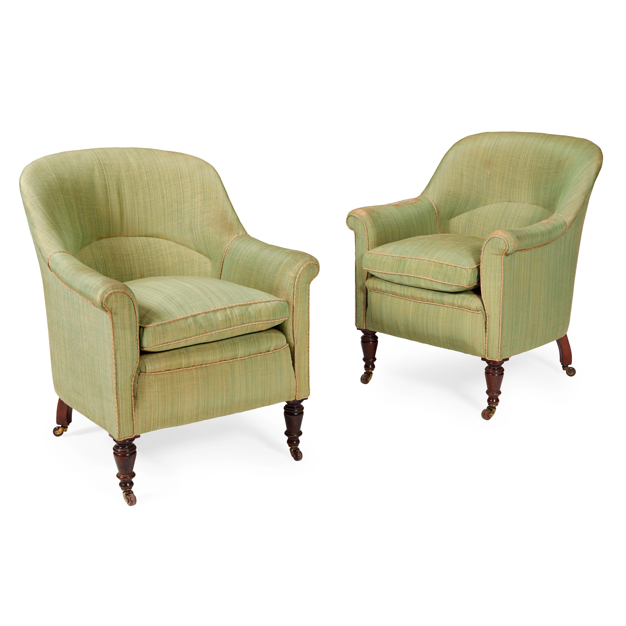 PAIR OF UPHOLSTERED TUB ARMCHAIRS
