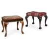 with needlework upholstered seat with exotic birds, cabriole legs and hairy hoof feet; together with ANOTHER GEORGE II STYLE STOOL, tartan seat, with claw and ball feet