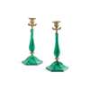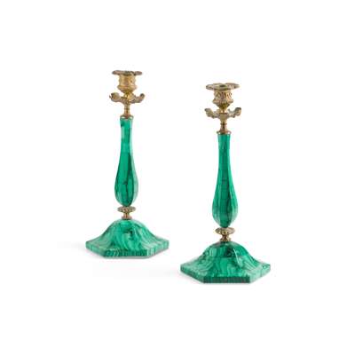 PAIR OF MALACHITE AND GILT BRONZE CANDLESTICKS