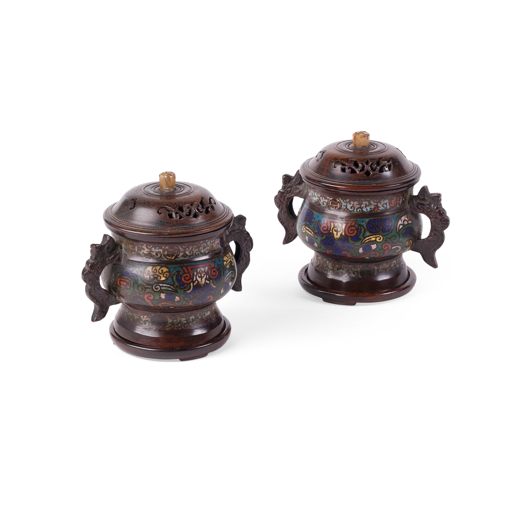 PAIR OF CHINESE CLOISONNÉ ENAMEL CENSERS