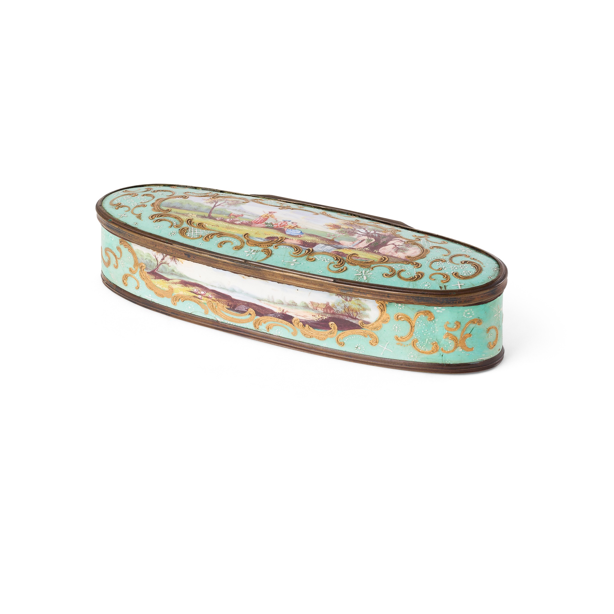 depicting figures in landscapes, on a green ground, with antique label to bottom 'Galleria Antiquaria, Torino'