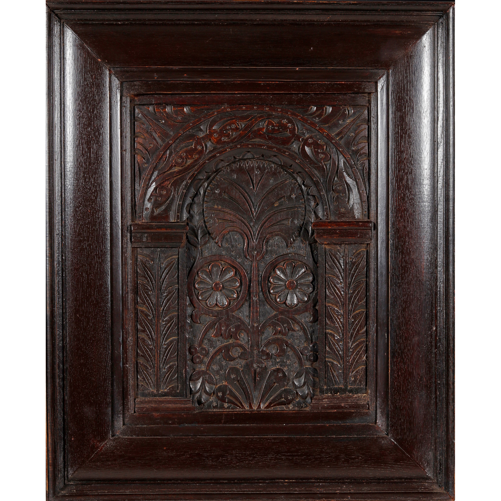 West Country, possibly Salisbury, with carved arcade enclosing stylized flowers, inset in moulded frame