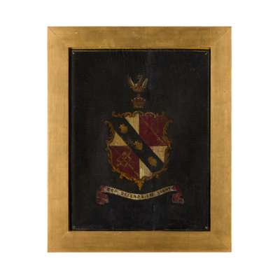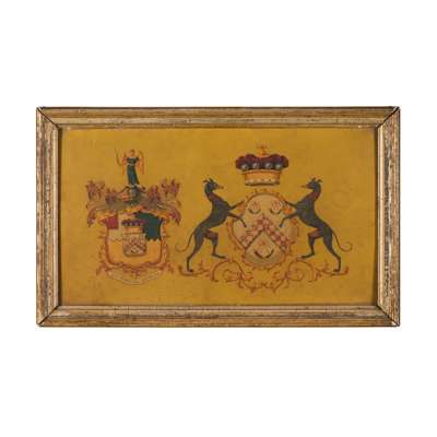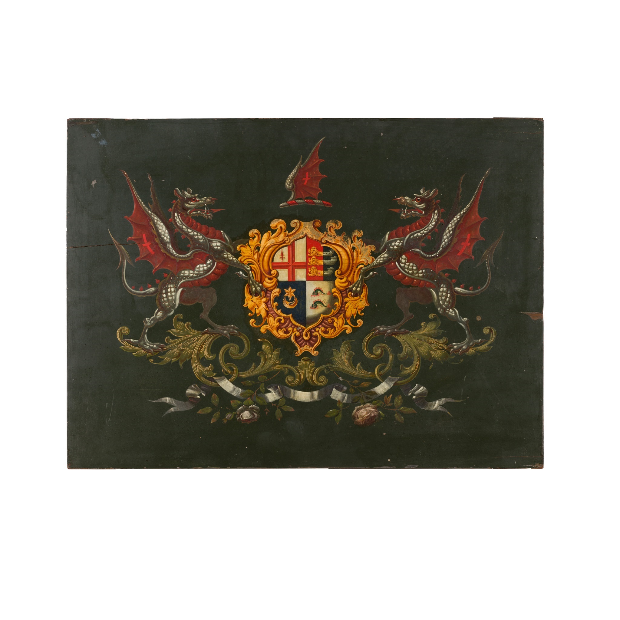 FOUR SMALL PAINTED WOOD ARMORIAL COACH PANELS