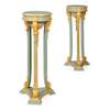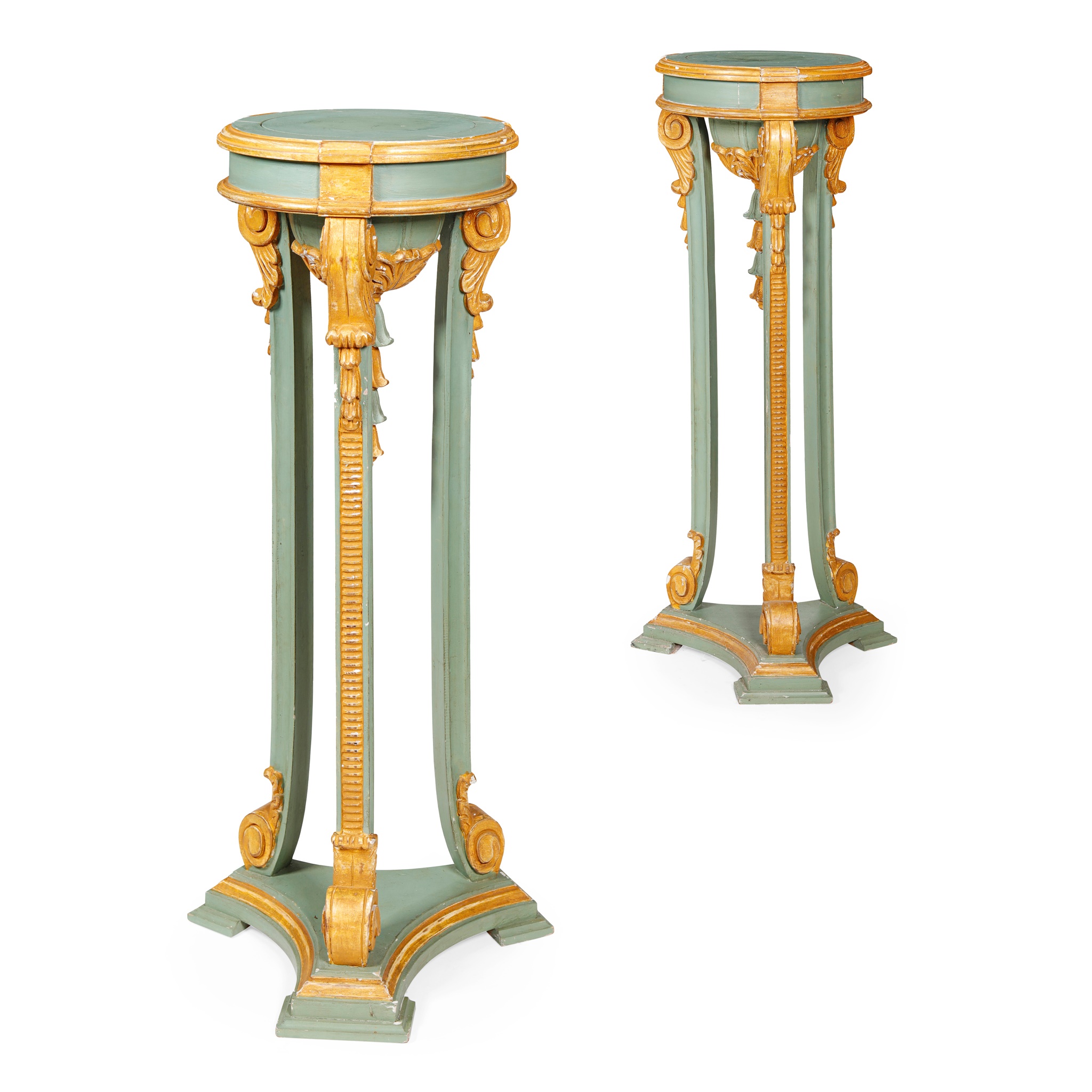 PAIR OF NEO-CLASSICAL STYLE GREEN PAINTED AND GILT WOOD STANDS