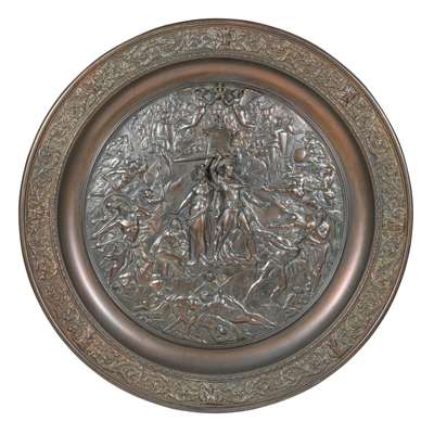 plaque 107cm wide, 66cm high; dish 91cm diameter