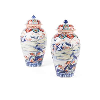 PAIR OF JAPANESE IMARI PORCELAIN COVERED JARS