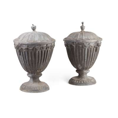 PAIR OF GEORGE III STYLE LEAD URNS