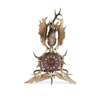 with various antlers and warthog tusks, surmounted by a carved stag's head