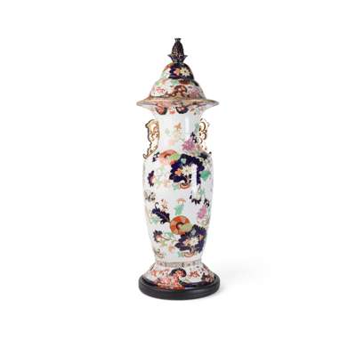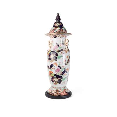 PAIR OF LARGE STAFFORDSHIRE 'JAPAN' PATTERN STONE CHINA URN VASES AND COVERS