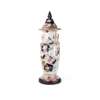 in Imari palette with flowers, with pineapple finial handles, on hardwood bases