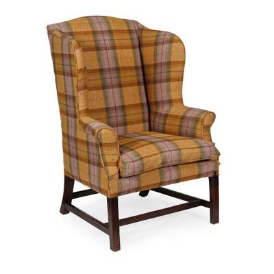 GEORGE III MAHOGANY FRAMED WING ARMCHAIR